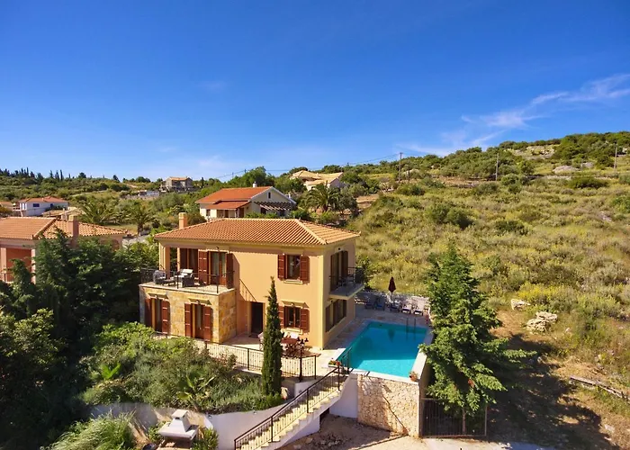 Villa Levanda med 3 sovrum, som ligger inom 2 km från Kimilia Beach, har en terrass med utsikt över havet. Villan med 3 badrum, som har utsikt över en pool, bjuder in gästerna att besöka Fiscardo Harbor, som ligger cirka 2 km bort.